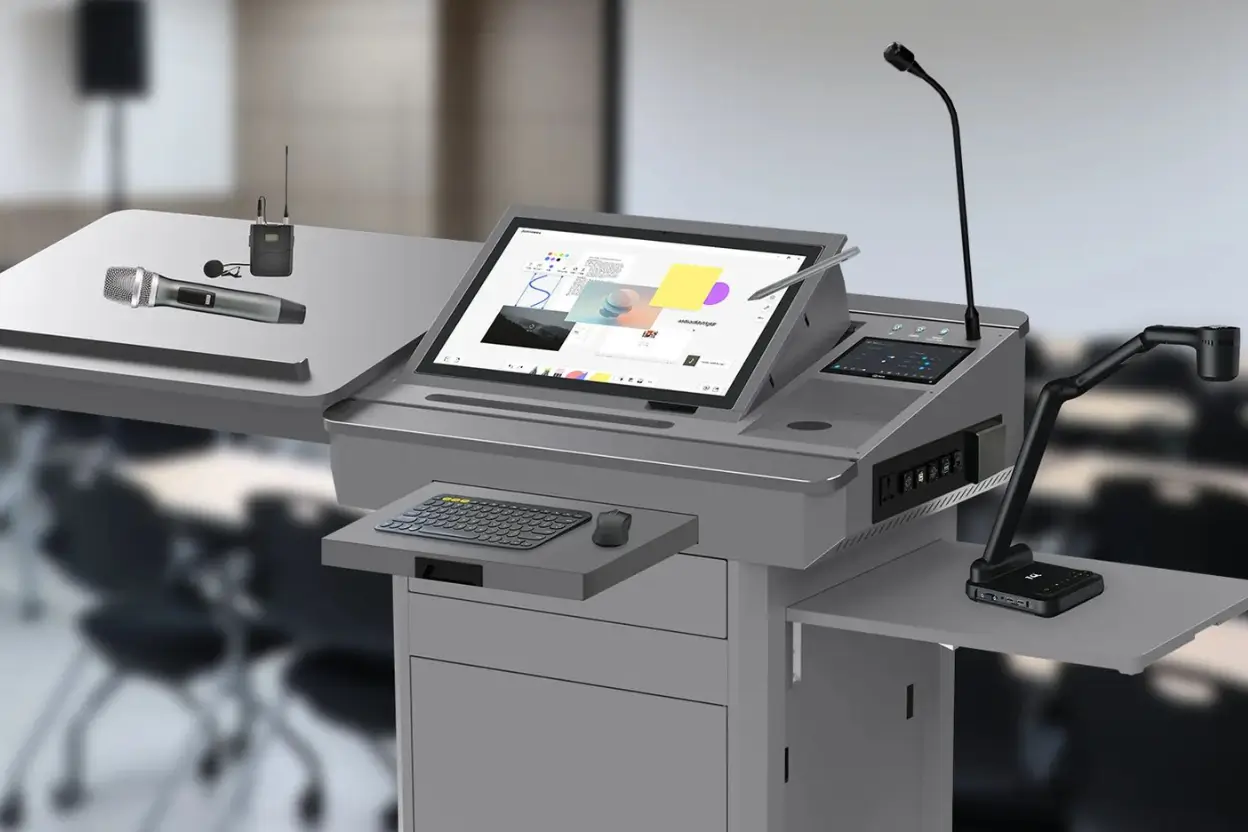 Supporting AV equipment including cameras, microphones, wireless presentation systems, and integrated collaboration tools to enhance interactive learning and professional presentations.